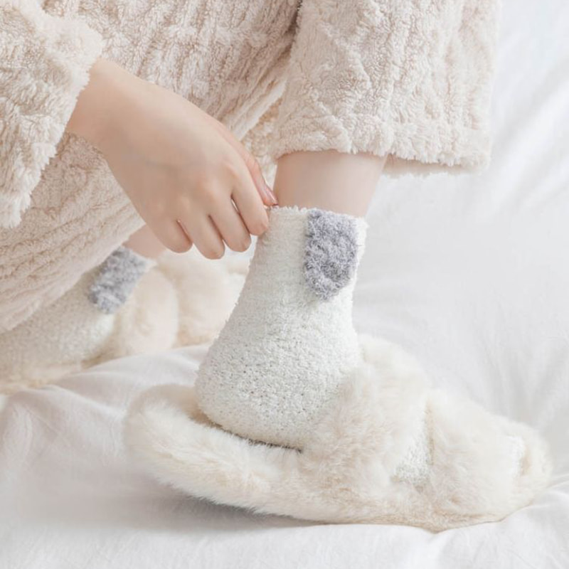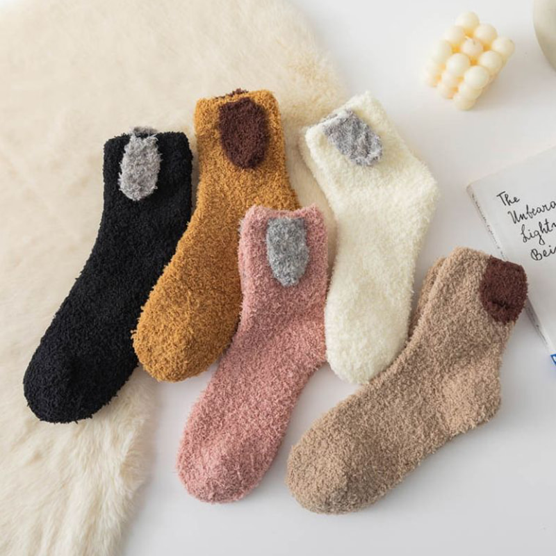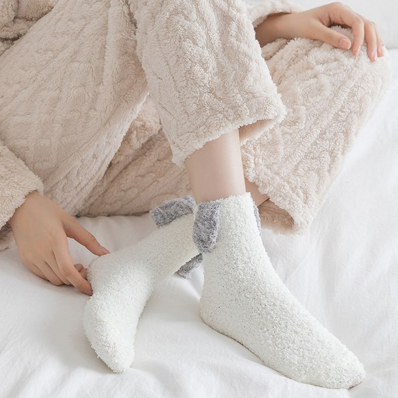 • أذنين أرنب ثلاثي الأبعاد ياباني جوارب مخملية مرجان للمنزل نصف مخملية الجوارب