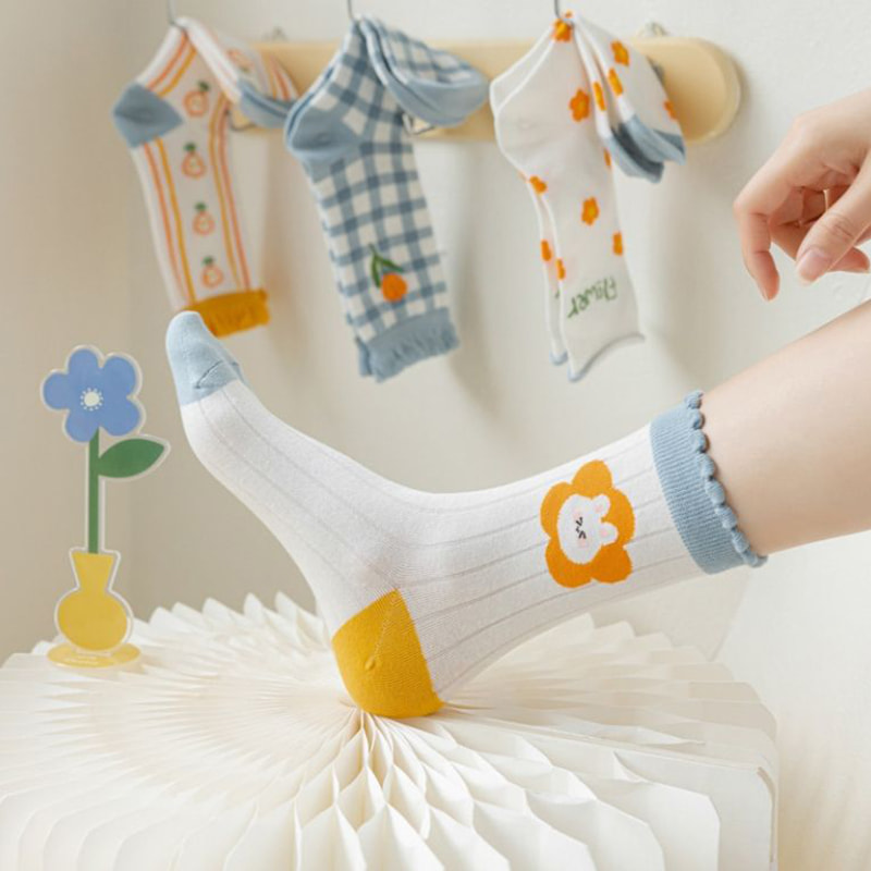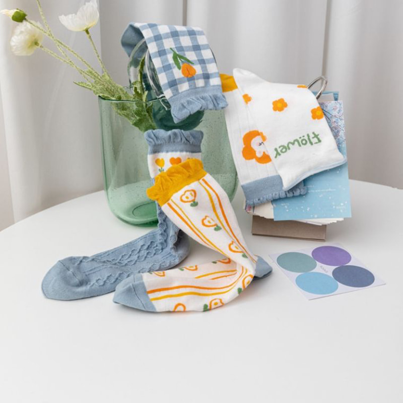 جوارب منتصف أنبوب للأطفال ، اتجاه الجوارب الكارتون اليابانية ، النسخة الكورية ، أربع موسم جوارب نساء رقيقة
